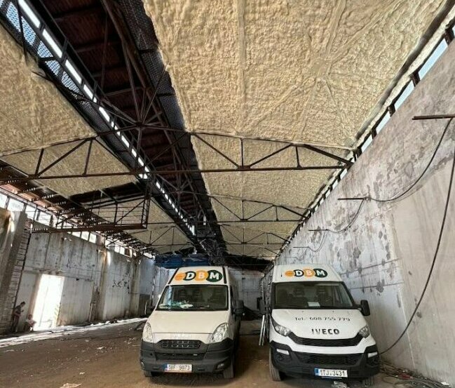 Zateplujeme haly, kontejnery, sila, nádrže, zásobníky, podlahy, ale i fotbalové stadiony. Kvalitní zateplení objektu se vrátí v průběhu 3 – 5 let, přidanou hodnotu je celkové zpevnění stavby. Jednolitá vrstva přispívá k udržení konstantní teploty uvnitř objektu bez kondenzace vodních par.