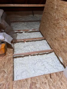 Zhotovujeme dřevěný laťkový rošt na podlahy, který slouží jako stabilní konstrukce pro následnou aplikaci PUR pěny. Rošt umožňuje přesné vymezení tloušťky izolace, zajišťuje rovinnost a zároveň vytváří prostor pro rovnoměrné vyplnění izolační pěnou. Toto řešení je vhodné zejména při zateplení stropů, půdních podlah a podlah v rekonstruovaných objektech.