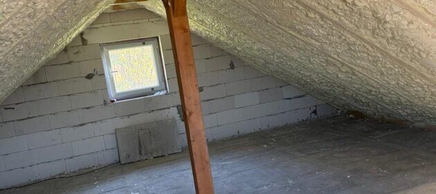 Nástřik podkroví RD termoizolační vrstvou pěny