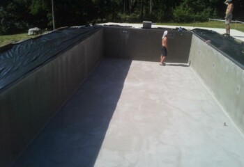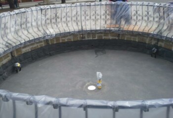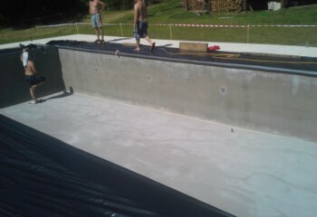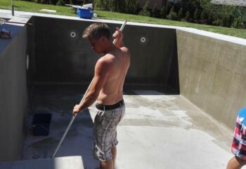 Realizace bazénu prostřednictvím polyurey Slam 210.