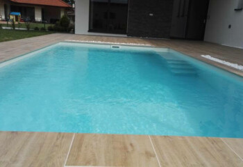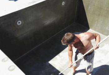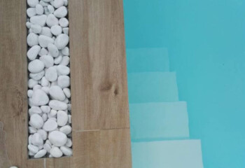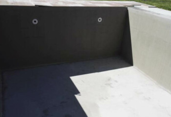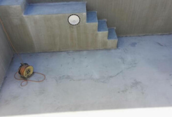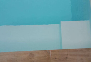 Příprava podkladu – vystěrkovaný bazén stavebním lepidlem – absolutně rovný povrch.
