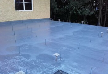 Nástřik hydroizolační vrstvy na terasu.