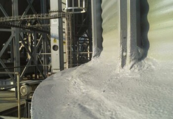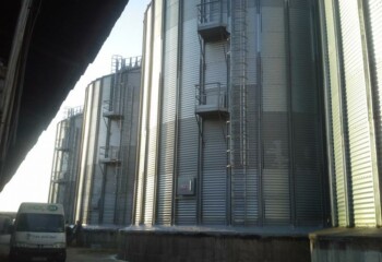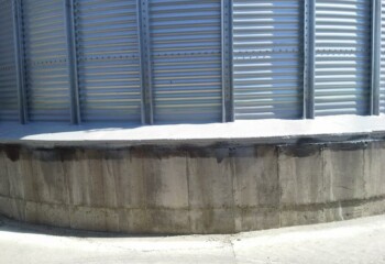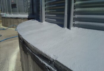 Nástřik opláštění obilných sil ve skladu obilovin. Problémem u obilných sil bylo zatékání vody v napojení oplechování na betonový podklad. Nástřik tvrdou střešní pěnou v síle 5 cm a následný nástřik dvousložkovou membránou Polyurea.