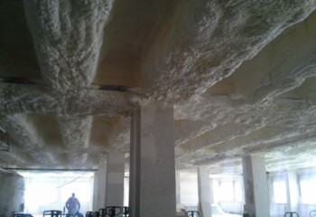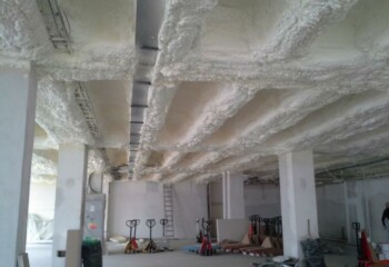 Nástřik pěnové izolace Sealection 500 v celé ploše v síle vrstvy 15 cm v dilatačních spárách.