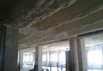 Výrobní hala, na kterou přímo navazují v 1 NP kanceláře. V kancelářích hluk způsobený provozem, v místech s dilatační spárou se přenáší 80% hluku, rezonance celého prostoru.Strop: betonový monolit.