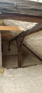 Součástí realizace bylo také zabednění otevřeného štítu pomocí OSB desek. Štít sousedil s přilehlou hospodářskou budovou a bylo nutné jej konstrukčně uzavřít a připravit pro další izolační práce.
