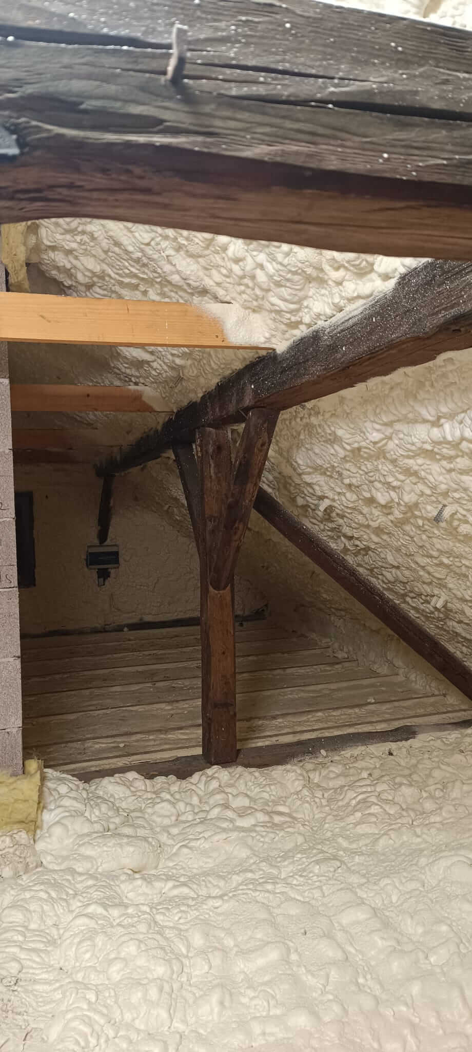 Na začátku zakázky jsme vytvořili dřevěný rošt na podlahu, který sloužil jako konstrukční základ pro následnou aplikaci izolace. Do tohoto roštu byla aplikována tvrdá PUR pěna Willpur 14301, která zajišťuje vysokou pevnost, výborné tepelněizolační vlastnosti a dlouhou životnost.