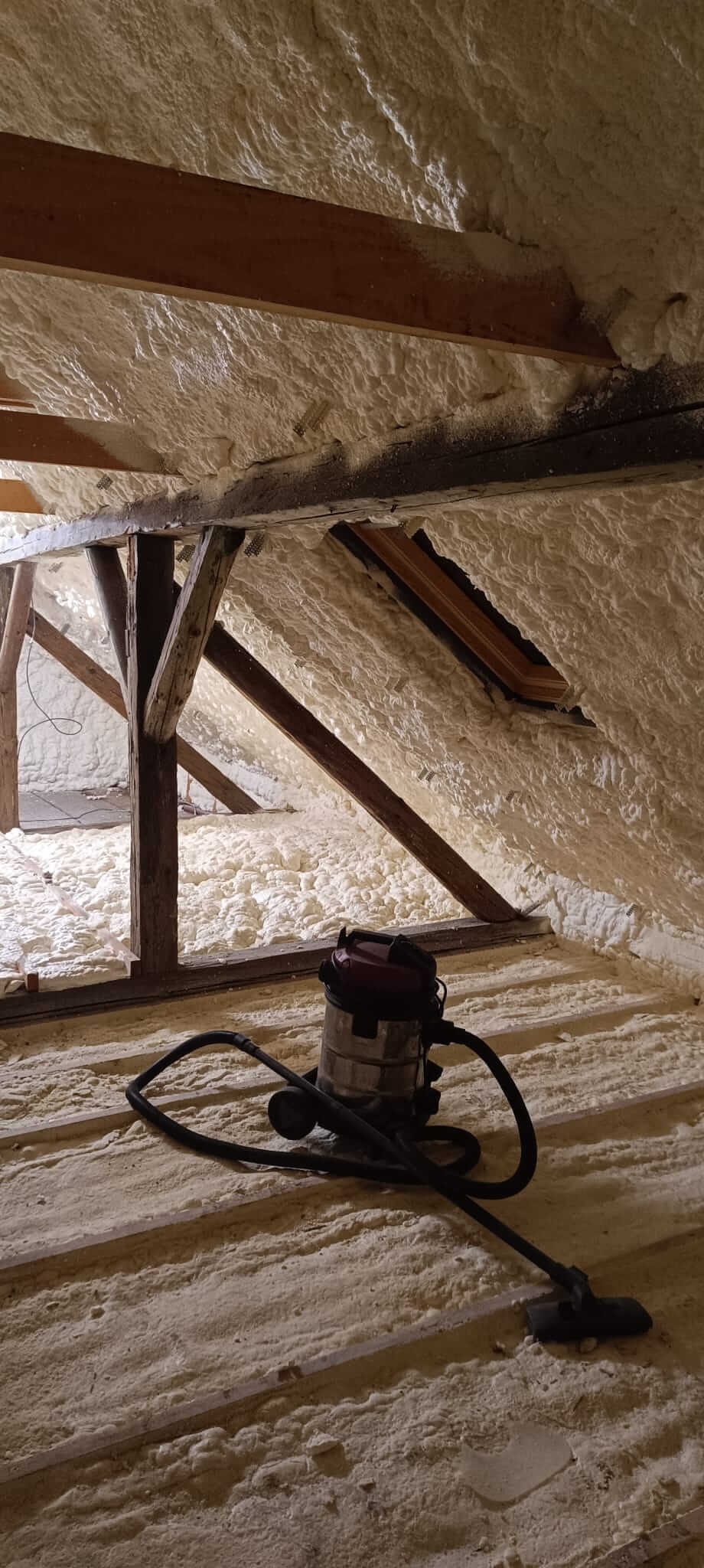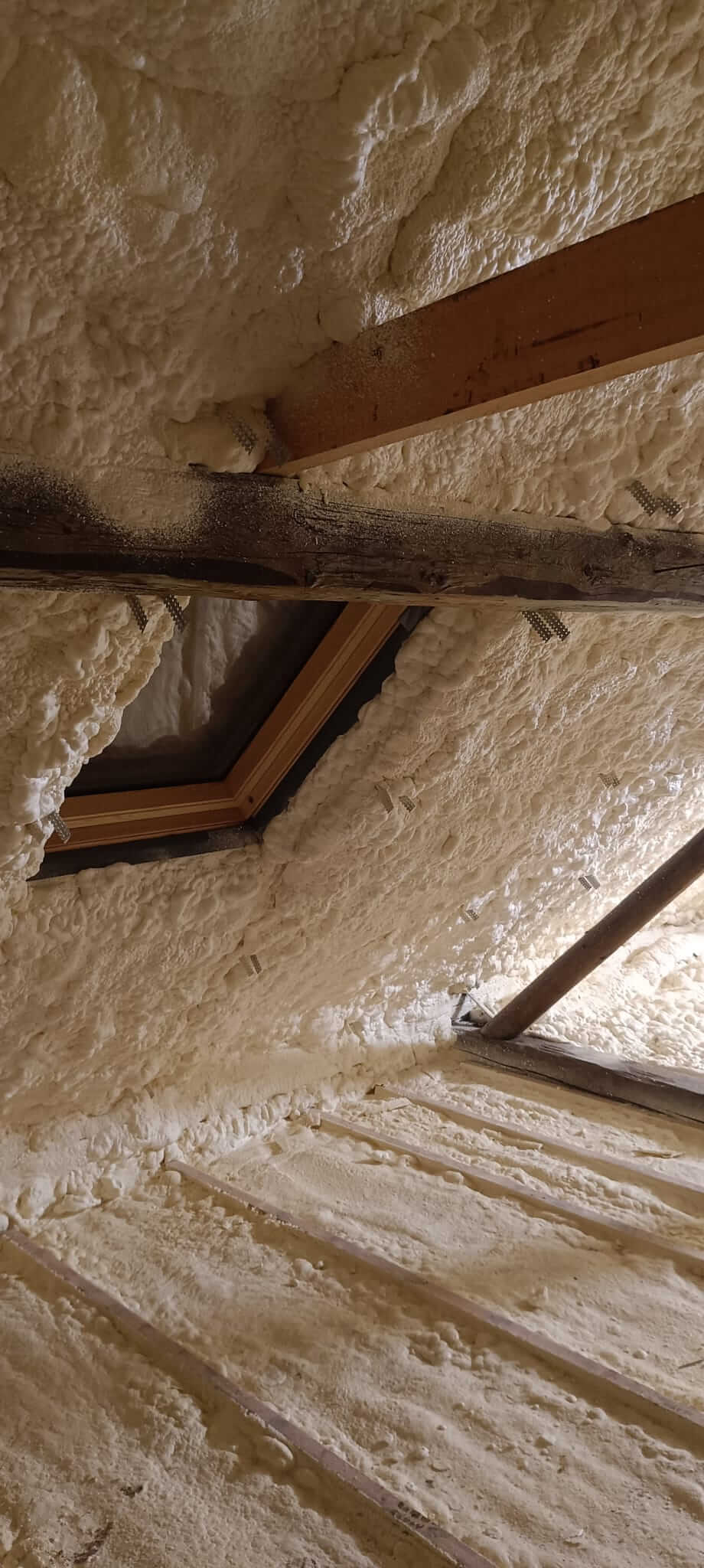 Po jejich instalaci byla aplikována měkká PUR pěna Willpur 14501, která je ideální pro zateplení stropů a šikmých konstrukcí. Díky své struktuře perfektně vyplní veškeré spáry, eliminuje tepelné mosty a přispívá k lepšímu akustickému komfortu.