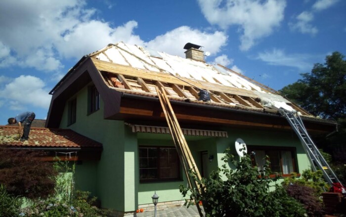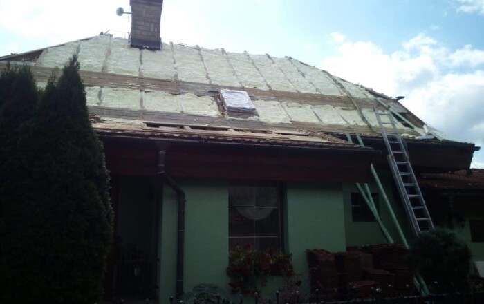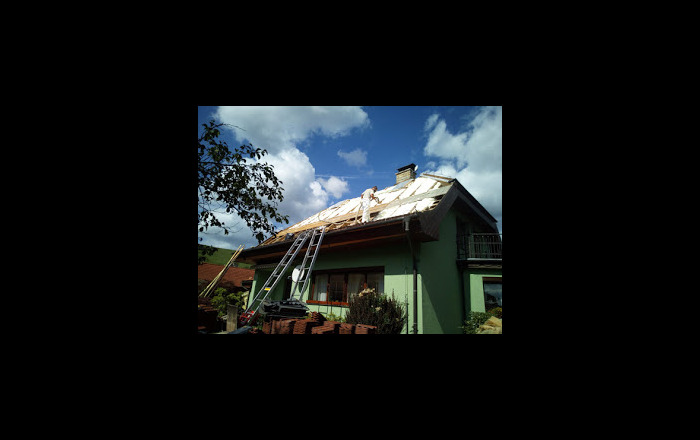 | Stručný popis projektu: Zateplení střechy rodinného domu z venkovní strany. Pro provedení zateplení byla nutná koordinace se střechařskou firmou, která den předem nutno odstranila střešní krytinu. V dalším dnu naše firma, střechu zateplila a tentýž den se mohlo pokračovat v zakrývání střechy. Realizace provedena měkkou pěnovou izolací Willpur 14501, v síle 220mm, prostup tepla U 0,168 W/m2K. |