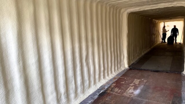 Stručný popis projektu: Nástřik haly v areálu firmy Škoda Vagónka v Ostravě termoizolační vrstvou pěny s uzavřenou strukturou buněk + nástřik krycí vrstvou primalexu proti UV záření. Aplikace na plochy trapézového plechu s přes stříkáním nosných prvků. Výška haly 6,5 m. Aplikace byla provedena ze dvou plošin a dvěma aplikačními týmy najednou pro urychlení celé akce. Celková plocha aplikace 1050 m2 v síle vrstvy 10cm + vyplnění trapézového plechu 13 m3. Minimální tepelný odpor R = 4,5 m2.K/W. Celá zakázka byla provedena během 5 dní, včetně přípravy – olepení a celkového úklidu.